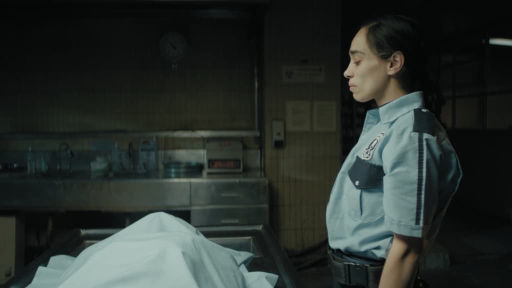 La protagonista es una guardia de seguridad que, después de un accidente donde atropella a alguien, es transferida a trabajar de noche en una morgue. Ahí, entre cuerpos, pasillos vacíos y un silencio denso, comienza a percibir algo que va más allá del miedo físico: una presencia que podría ser real… o un reflejo de su culpa.