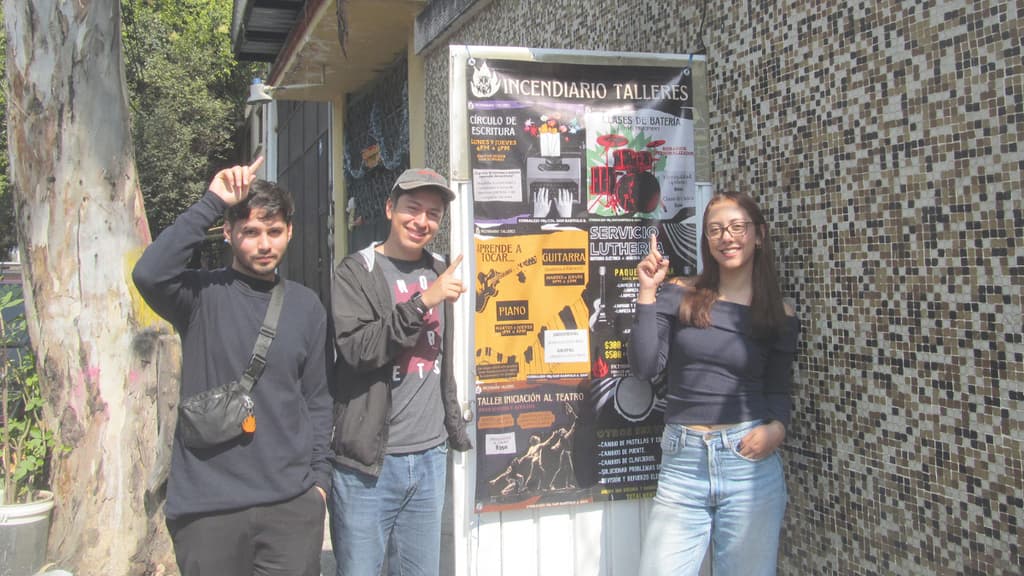 Jorge, Arlette y Diego sostienen Incendiario, un punto de encuentro para los amantes del cine, el teatro, la música, las manualidades y otras expresiones artísticas